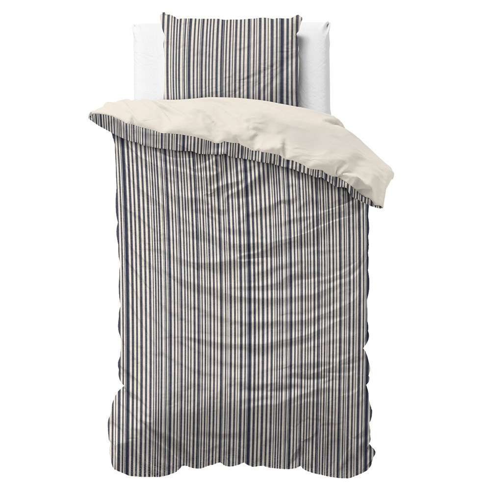 Sengesættet Blue Regatta har et elegant stribet mønster: marineblå striber på en cremefarvet baggrund på den ene side og ensfarvet cremefarvet baggrund på den anden. Det er lavet af 100% bomuld, hvilket gør det åndbart, slidstærkt og ideelt til allergikere.